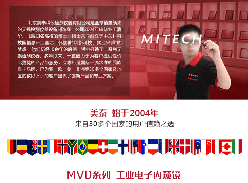 產(chǎn)品概述美泰MVD系列工業(yè)內(nèi)窺鏡,基于CMOS圖像傳感器成像原理,能夠?qū)θ搜蹮o法進行直接觀察的區(qū)域進行拍攝成像,高清顯示,從而實現(xiàn)無損檢測。美泰MVD系列內(nèi)窺鏡是一款高精度視頻電子工業(yè)內(nèi)窺鏡,采用彩色液晶顯示器以及高集成度CMOS圖像傳感器保證了視頻內(nèi)窺鏡影像的清晰、逼真;功耗小,信號傳輸速度快,攜帶方便,操作簡易。可在不拆卸或破壞組裝及停止設備運行的情況下對各種工業(yè)管路或復雜狹小的設備內(nèi)部空間的腐蝕、裂紋、焊縫、異物、磨損及零部件內(nèi)部的加工等情況進行全面細致的檢測。被廣泛應用于航天航空、石油化工、機械鑄造、國防軍事、電力生產(chǎn)、汽車交通等眾多領域,是工業(yè)設備檢測和維修等環(huán)節(jié)中重要的探測監(jiān)控儀器。
